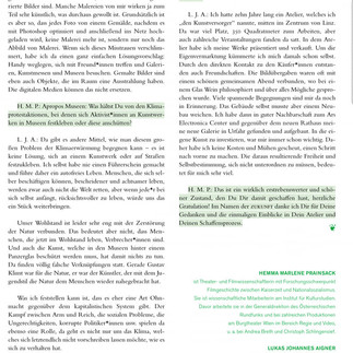 Unser Wohlstand ist leider sehr eng mit der Zerstörung der Natur verbunden. Das bedeutet aber nicht, dass Menschen, die jetzt im Wohlstand leben, Verbrecher*innen sind. Und auch die Kunst, welche in den Museen hinter einem Panzerglas beschützt werden muss, hat damit nichts zu tun. Da finden völlig falsche Verknüpfungen statt. Gerade Gustav Klimt war für die Natur, er war der Künstler, der mit dem Jugendstil die Natur dem Menschen wieder nahegebracht hat.